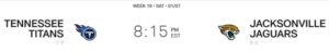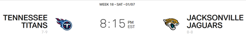 Let 511 put you front and center for this Saturday’s Tennessee Titans vs. Jacksonville Jaguars game! Parking is available at 4pm and the Fan Entertainment Zone opens at 5pm. Stadium gates will then open at 6pm for the 8:15pm kickoff. Download the FL511 app and arrive on time!