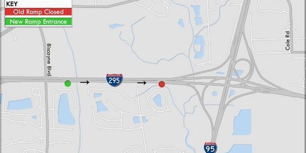 Traffic Shifted onto New I-295 EB to I-95 SB Exit Ramp